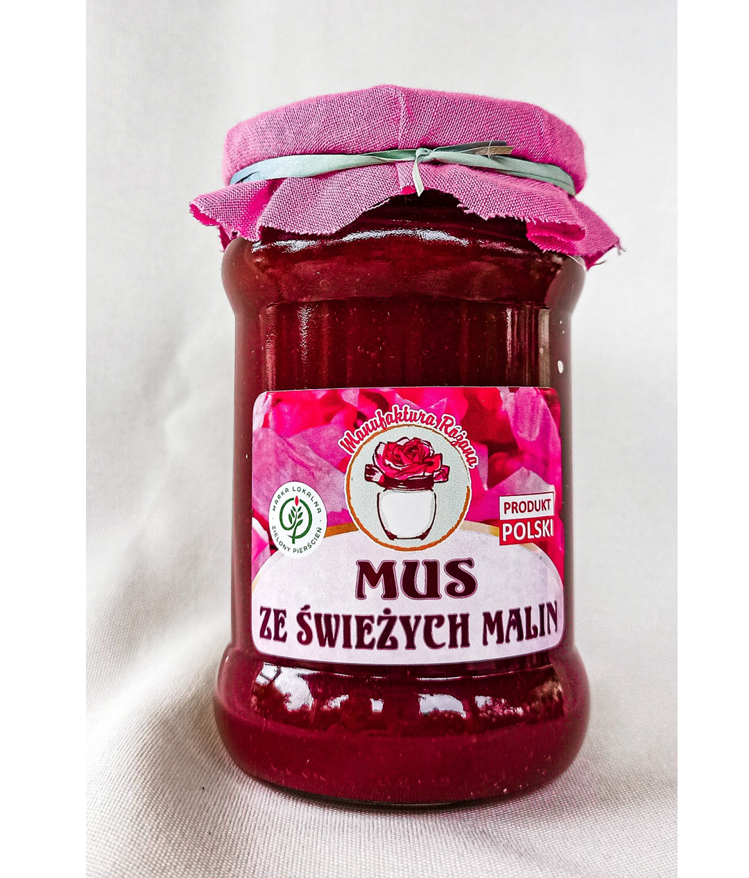 Idealnie gładki, kremowy, naturalny. Powstaje w wyniku ręcznego przecierania owoców malin pochodzących z własnej plantacji przez sito dzięki czemu mus ma kremową konsystencję bez pestek.